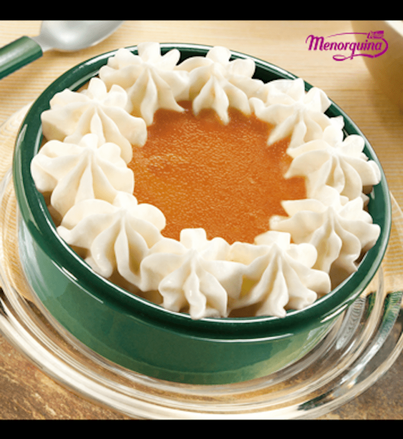 Biscuit ice cream, sponge cake base with raisins and whiskey syrup, all decorated with yolk mixture and topped with whiskey flavor ice cream